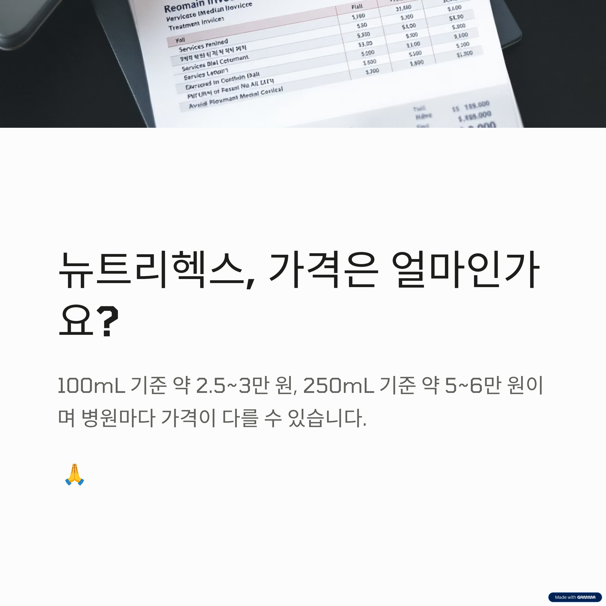 뉴트리헥스주는 비급여 약품으로 병원마다 가격 차이가 있습니다: